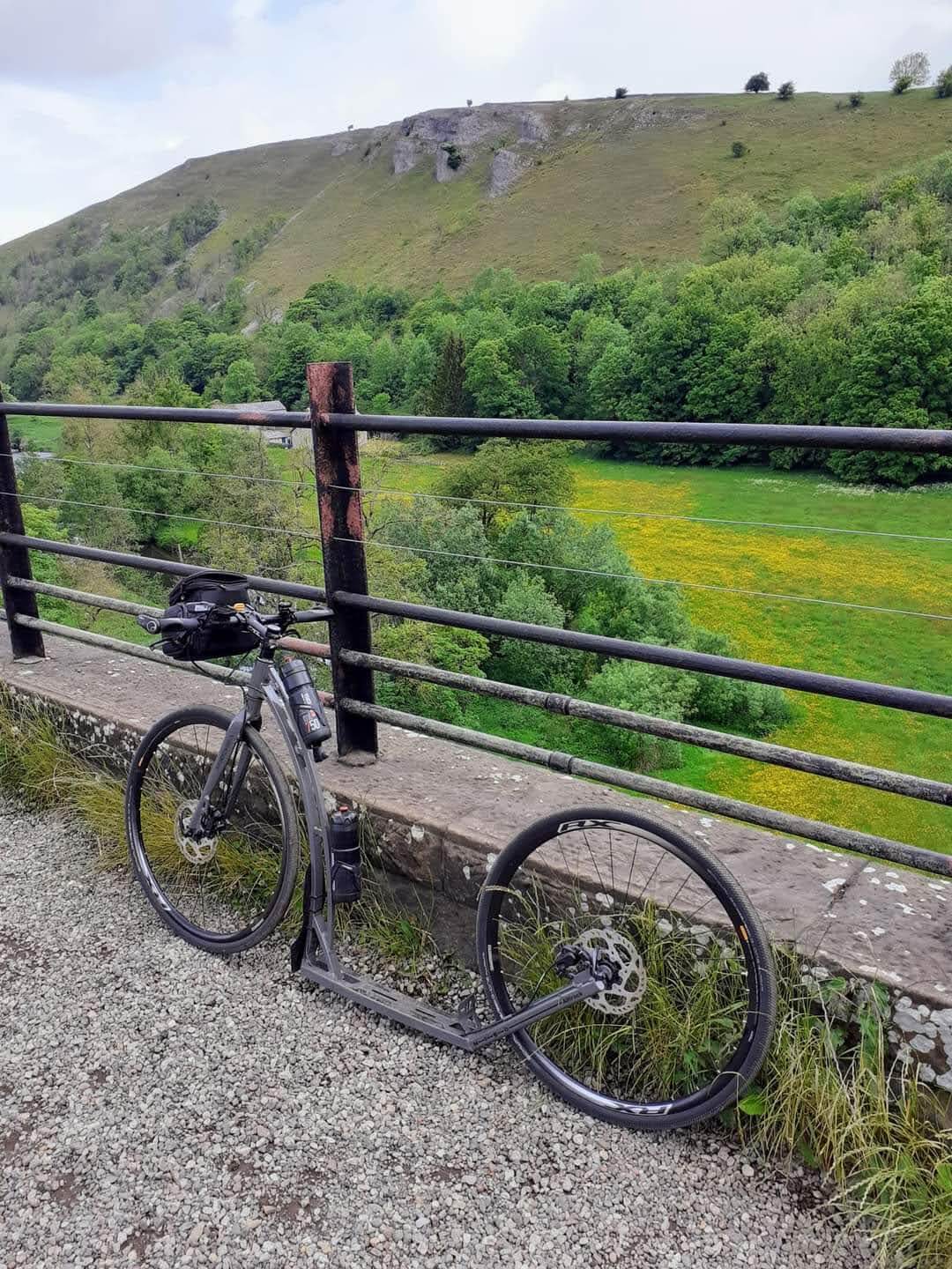 We parked at the Agricultural Business Centre in Bakewell (postcode DE45 1AH) which had hundreds of pay and display parking spaces. Although no facilities specifically for the car park, the centre of Bakewell was just a few minutes walk or scoot, which is a great location to visit itself. Public facilities here were paid, so remember those 20 pence pieces! To reach the start of the trail we rode on a small road for about 2 miles, the start was signposted and is route 680 on Sustrans National Cycle Network. A quick push of the scooters up alongside steps led to the start of the trail.