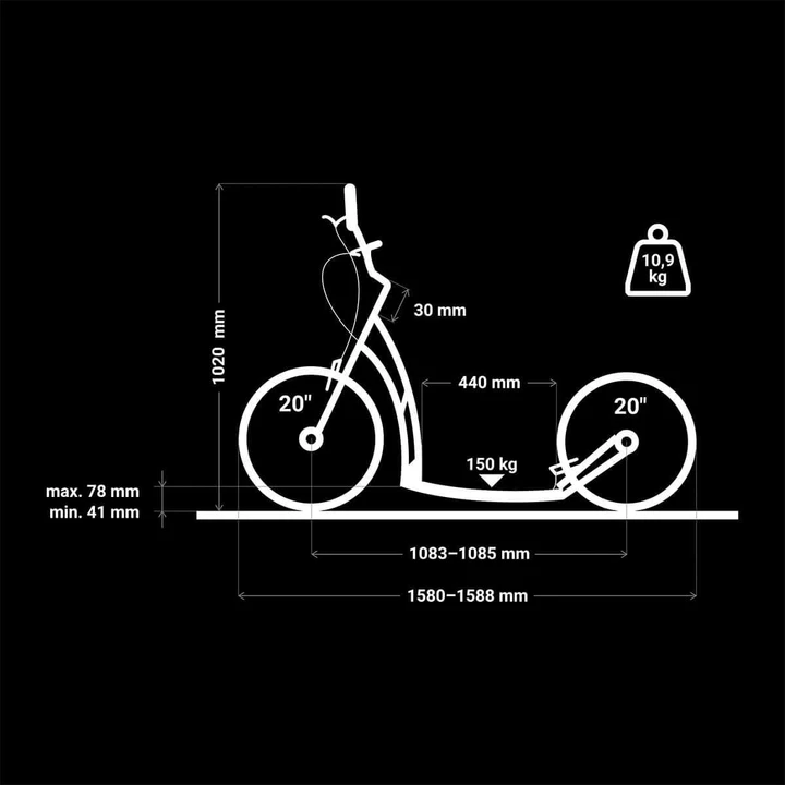 The MIBO Royal is a strong, multi-purpose folding steel frame footbike for those seeking versatility but in a slightly larger size than the MIBO Mastr. The Royal is sized for both younger and older riders, including those up to 6.5 ft in height. Due to its compact footprint when folded, the Royal is also a great choice for city dwellers and those looking to minimize storage space. The 20" cruiser tires ride smoothly and handle all variety of terrain. Like other MIBO models, Shimano 4000 brakes ensure efficient and dependable speed control. A great mid-sized wheels option!