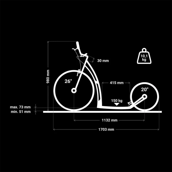 version of the popular Universe. Like all MIBO footbikes, the Split offers the usual high quality and great comfort expected from MIBO. This footbike is particularly suited for recreational use, suitable for both on and off road terrain. The new folding feature also makes the Split an excellent choice for space saving and portability.
